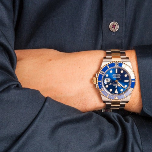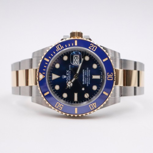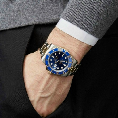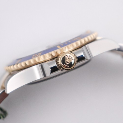ベゼル:セラミック製マットブルーセラクロム インサート、60分目盛り入り両方向回転、数字と目盛りはポリッシュレイズド仕上げ